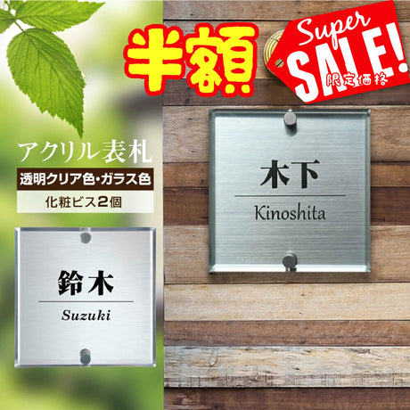 アクリル表札は、透明感と洗練されたデザインが魅力の人気ネームプレートです。軽量で耐候性に優れ、屋外設置にも安心。ガラスのような美しさを持ちながら割れにくく、新築住宅やマンション、店舗の玄関に最適です。