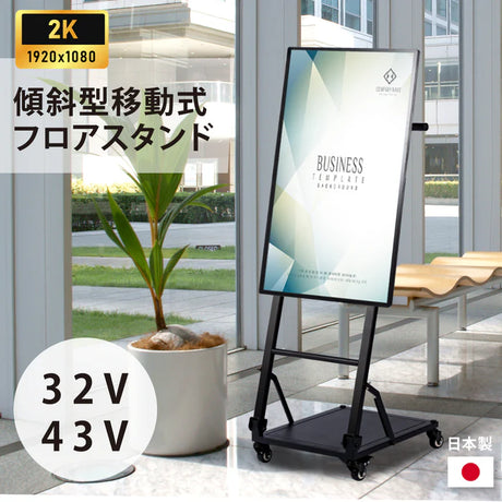 縦横両用 角度調整OK スタンド付きデジタルサイネージ 32インチ 室内用 フルHD(1920×1080)高さ1360mm tstv-s32