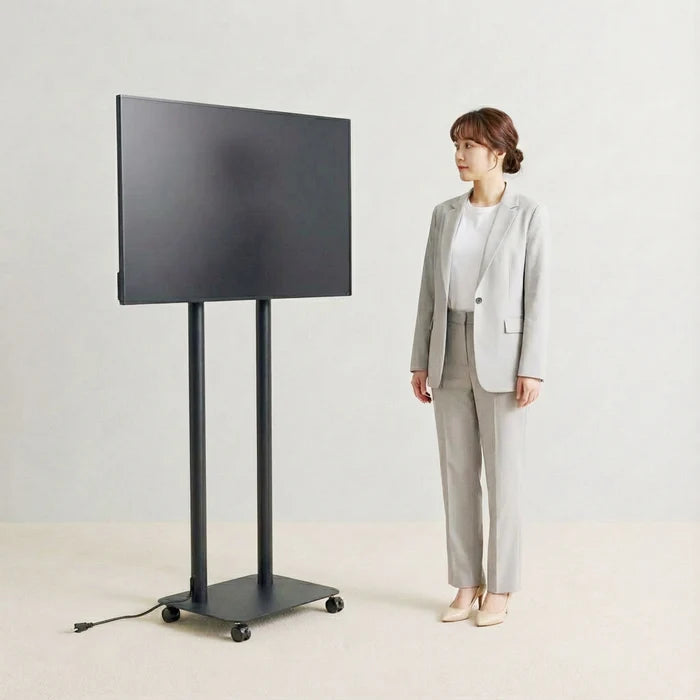43インチ デジタルサイネージ キャスター付き 2本ポールスタンド 縦横対応 フルHD 室内用 高さ1698mm TSTV-CHD43 - ブラック ...は取り寄せ中で入荷次第発送します。