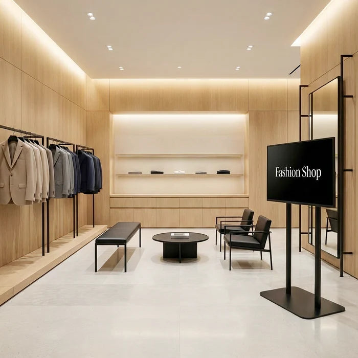 シンプルで洗練されたデザインのため、店舗・商業施設・オフィス・展示スペースなど さまざまな空間に自然に設置できるモデルです。