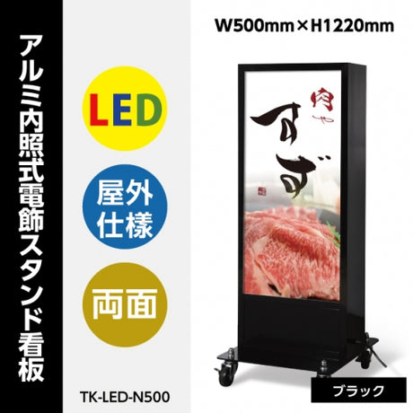 下限 ¥55,000単価LED看板 電飾スタンド看板 両面表示 内照式 店舗用看板 シルバー ブラック TK-LED-N500
