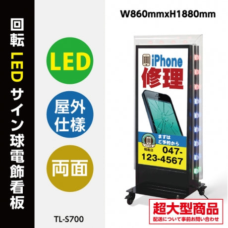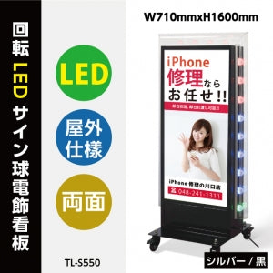 下限 ¥82,500単価LED看板 電飾スタンド看板 回転式 内照式 店舗用 屋外看板 シルバー ブラック TL-S500