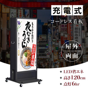 LED充電式コードレス電飾スタンド看板 店舗用看板 高さ1200mm 黒白 2色bnm-1200s 代引不可