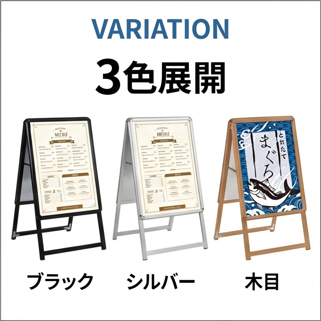 A型スタンド看板 激安コスパタイプ A2両面 ブラック、シルバー、木目 3色jc-a2-d