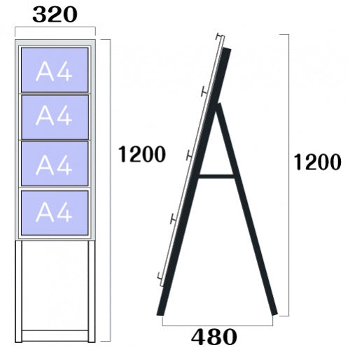 カードケーススタンド看板 A4横4 片面 シルバー kdks-a4y4kh