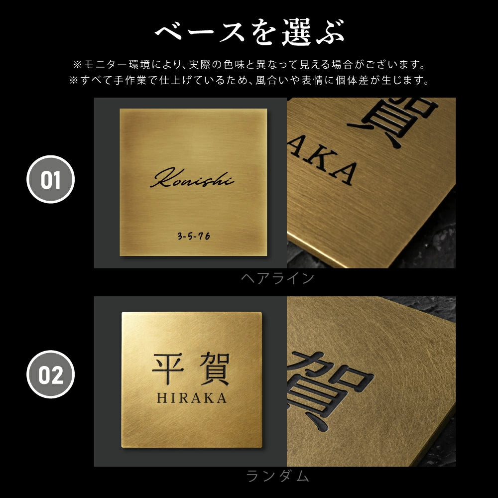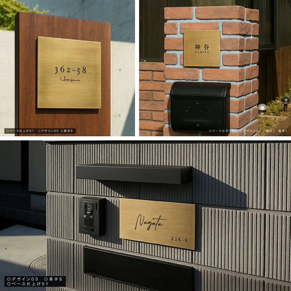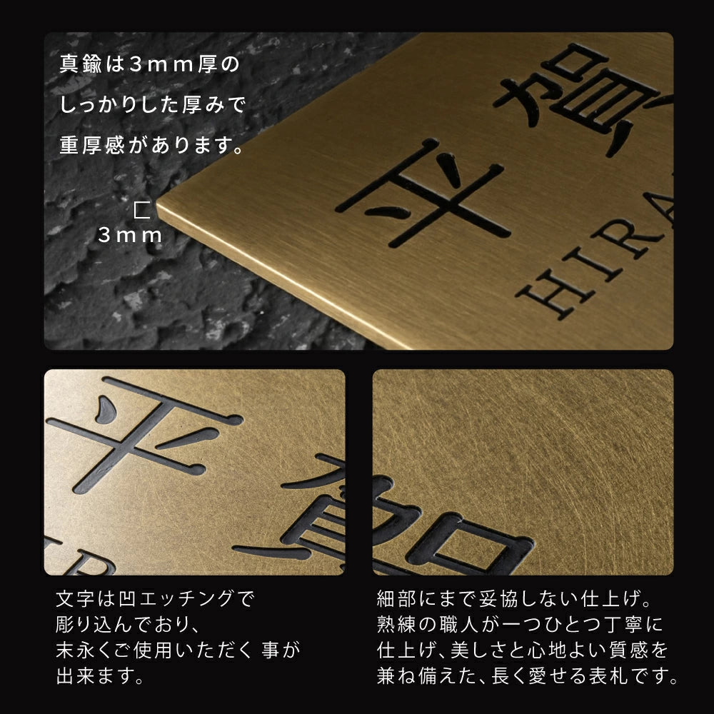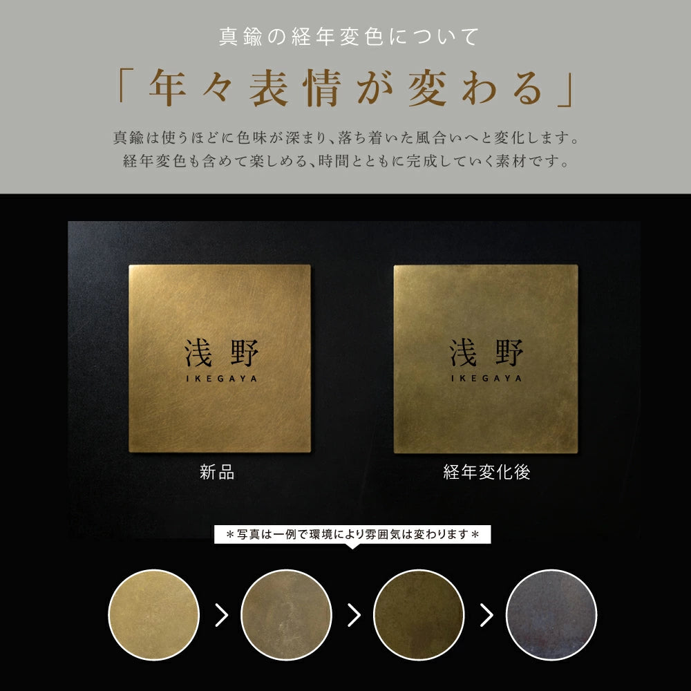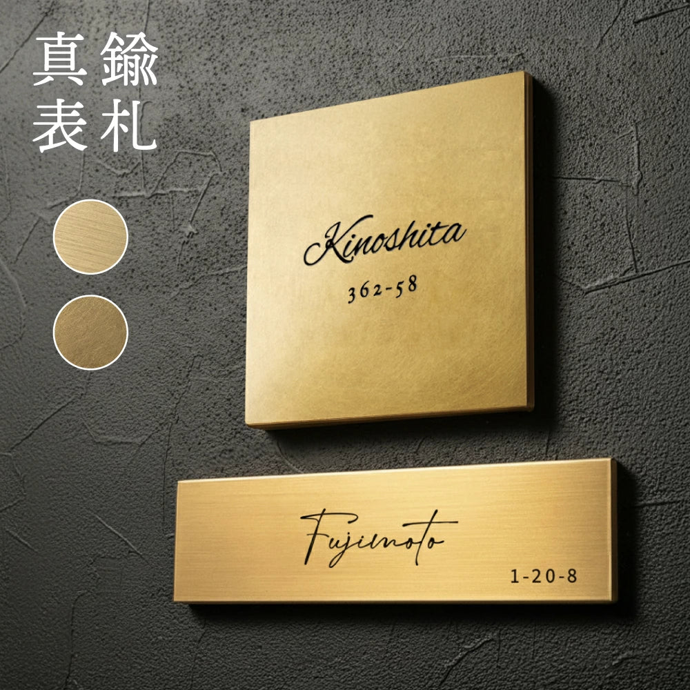 真鍮表札 3mm厚 サイズ選べる オーダーメイド 戸建て 玄関 門柱 機能門柱対応 おしゃれ ゴールド アンティーク 筆記体 漢字・ローマ字 ネームプレート 取り付け簡単 tz-19
