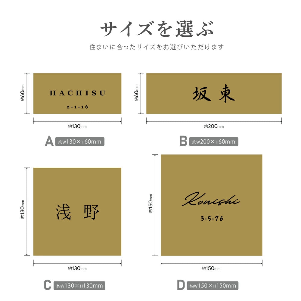 真鍮表札 3mm厚 サイズ選べる オーダーメイド 戸建て 玄関 門柱 機能門柱対応 おしゃれ ゴールド アンティーク 筆記体 漢字・ローマ字 ネームプレート 取り付け簡単 tz-19 - A: 約w130xh60 / 追加しない / 追加なし ...は取り寄せ中で入荷次第発送します。