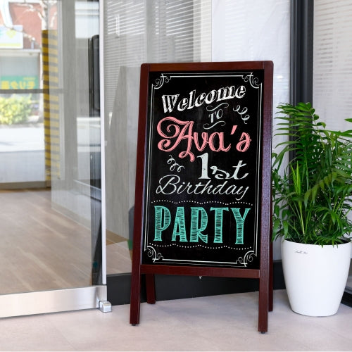 コンパクトながら視認性の高いサイズで、入口前や店頭スペースに設置しやすいスタンドタイプのサインボードです。店舗看板、案内看板、メニュー看板など様々な用途にご利用いただけます。