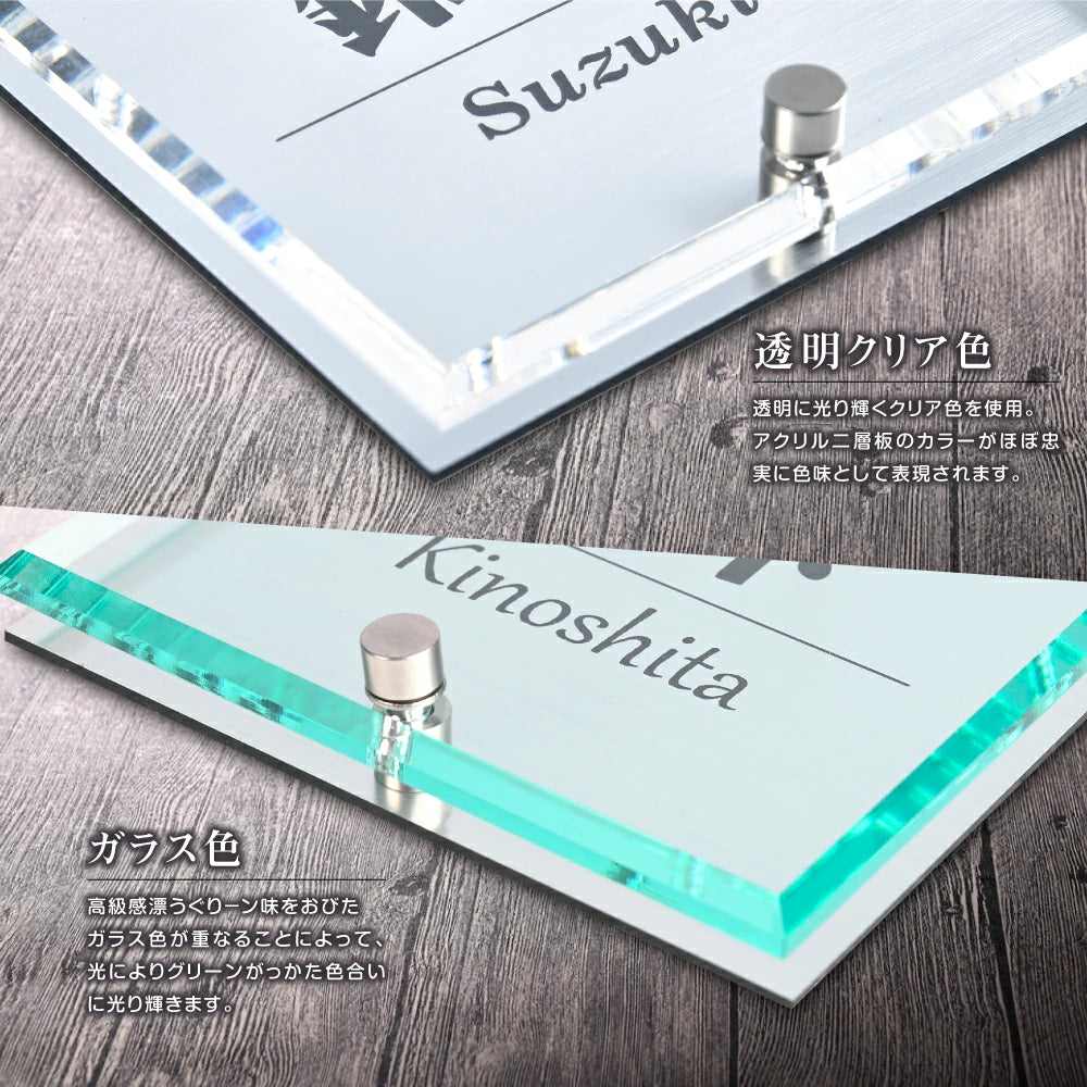 日本製 アクリル×二層板表札 ステンレス調 レーザー彫刻 戸建て・マンション対応 室名札 ドアプレート 選べる4サイズxg-19