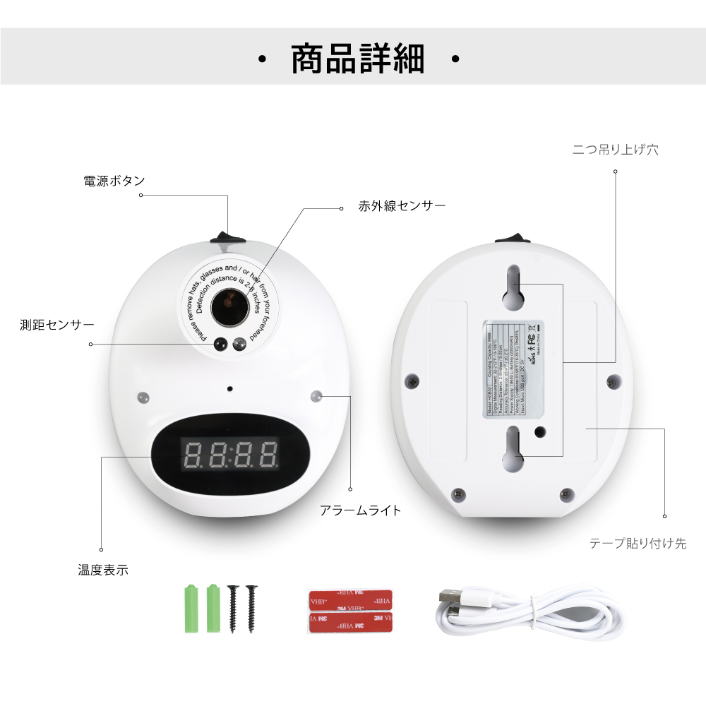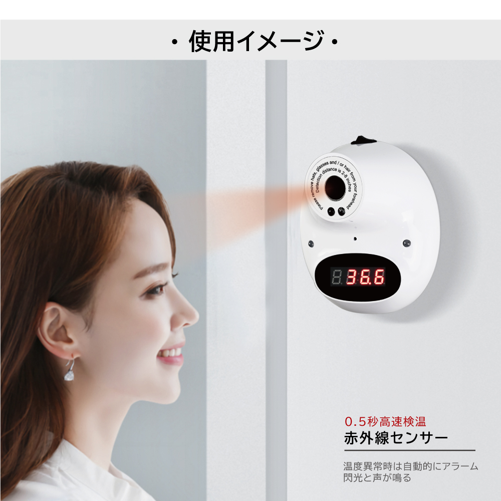 壁掛け 非接触検知器 スピード検温 高精度 赤外線瞬間検知 高温警告 長時間使用 非接触型 学校用 住宅用 オフィス 保育園用 会社用 学校 飲食店 スーパーマーケット mkk-119