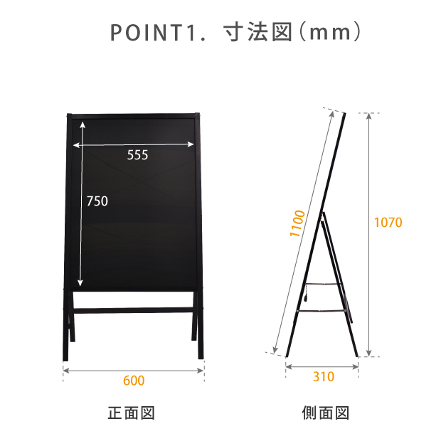 A型ライティングボード マーカー用 片面 ブラック rgb-bsm-110