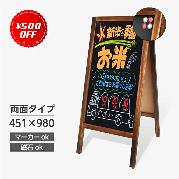 A型スタンド黒板 H980mm 両面 マーカー 焼杉枠 磁石 業務用 グロスfwbd-90-mg