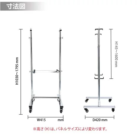 | 本体サイズ | 本体サイズ:W415mm×H1030~1795mmxD420mm※高さ(H)は、パネルサイズにより変わります。 |