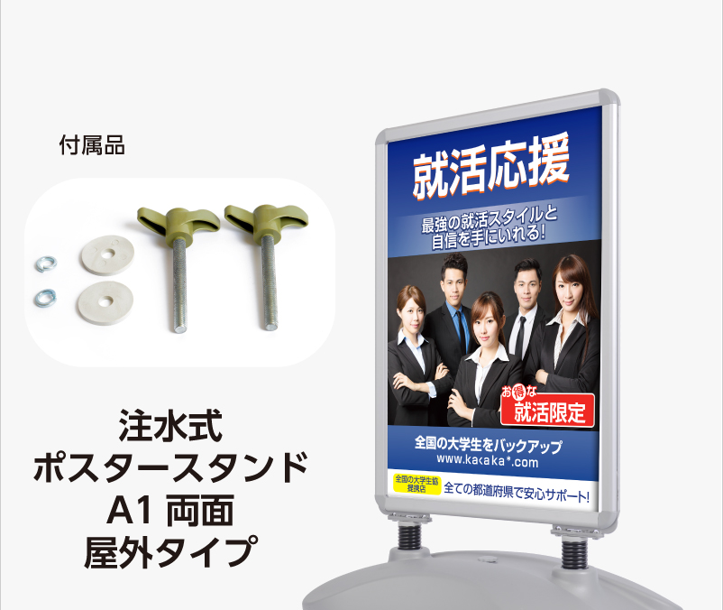 注水式スタンド看板 ポスタースタンド 防水 安定性UP A1 両面 店舗用看板 屋外タイプ tank-a1d-sk