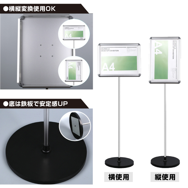 ポールスタンド看板 クリップ開閉式 案内スタンド 家庭用プリンター A4サイズ対応 MUL-A4S3
