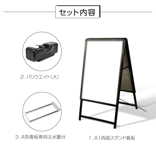 A型LEDライトパネル 風対策セット A1 両面 ブラック 3set-alp-a1d-bk 【法人名義:代引可】