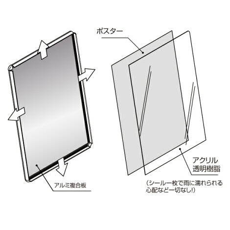 ポスターフレーム看板 W640mm×H885mm 屋外使用 壁付グリップ式 LEDパネル PGLED-A1【法人名義:代引可】