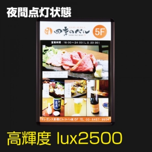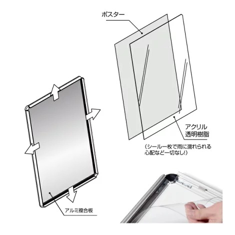 ポスターフレーム看板 W790mm×H1090mm シルバー 屋外使用 壁付グリップ式 LEDパネル PGLED-B1【法人名義:代引可】
