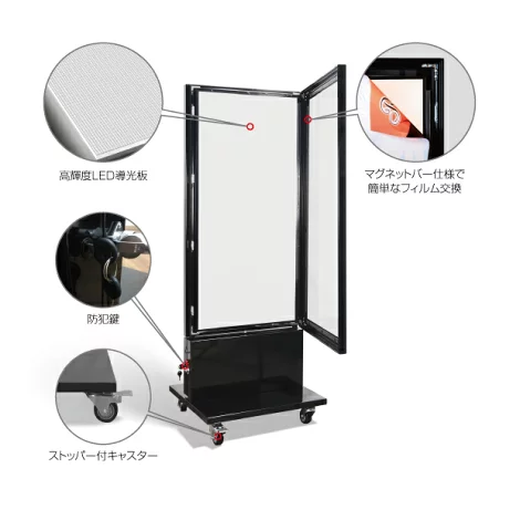 LEDバッテリー導光板スタンド看板 W600mmxH1635mm 開閉式 充電式 屋外対応 両面表示 led-j1640【代引不可】