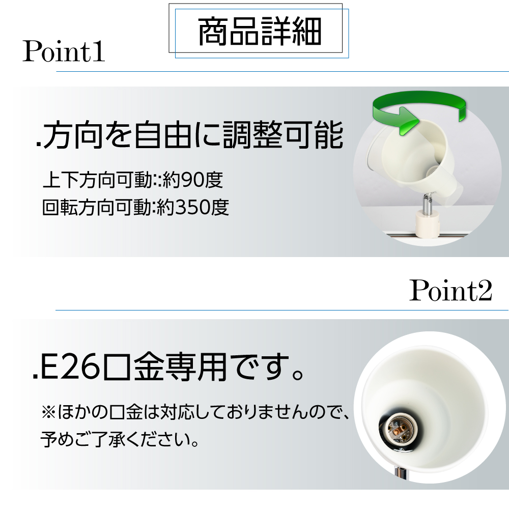 スポットライト 【E26口金対応 LED電球別売り】 配線ダクトレール用 zhg-wjb