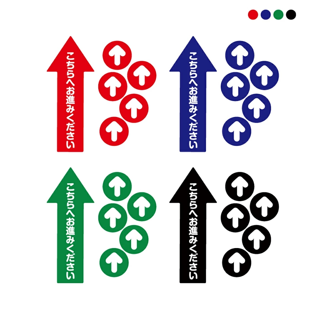フロア誘導シール「こちらへお進みください」赤・青・緑・黒 | 床面貼付ステッカー フロアシール シール 誘導 標識 案内 案内シール 矢印 ステッカー 滑り止め 日本製 fs-s-03