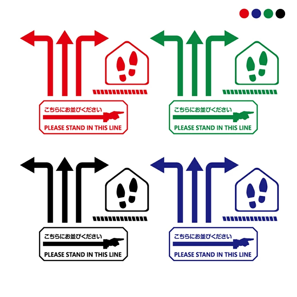 フロア誘導シール「こちらに並びください」2ヶ国語 赤・青・緑・黒 | 床面貼付ステッカー フロアシール シール 誘導 標識 案内 案内シール 矢印 ステッカー 滑り止め 日本製 fs-s-12