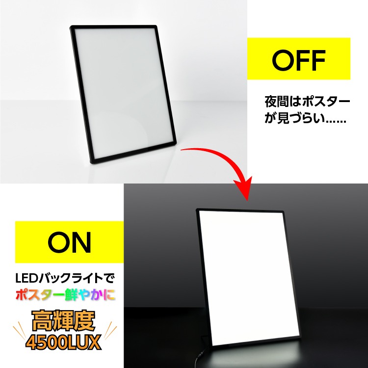 LEDポスターパネル 【ブラック、シルバー】2色選べる A1 薄型 ライトパネル ライティングボード led-pu-a1