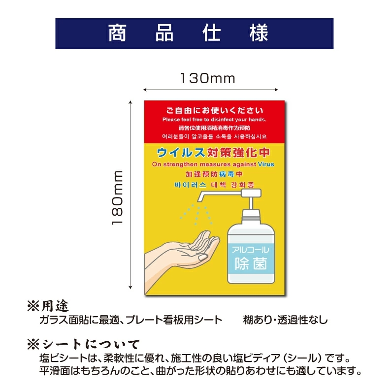 日本語、英語、中国語、韓国語の4か国語対応です。 ステッカー看板。シール状なので貼るだけでOK。