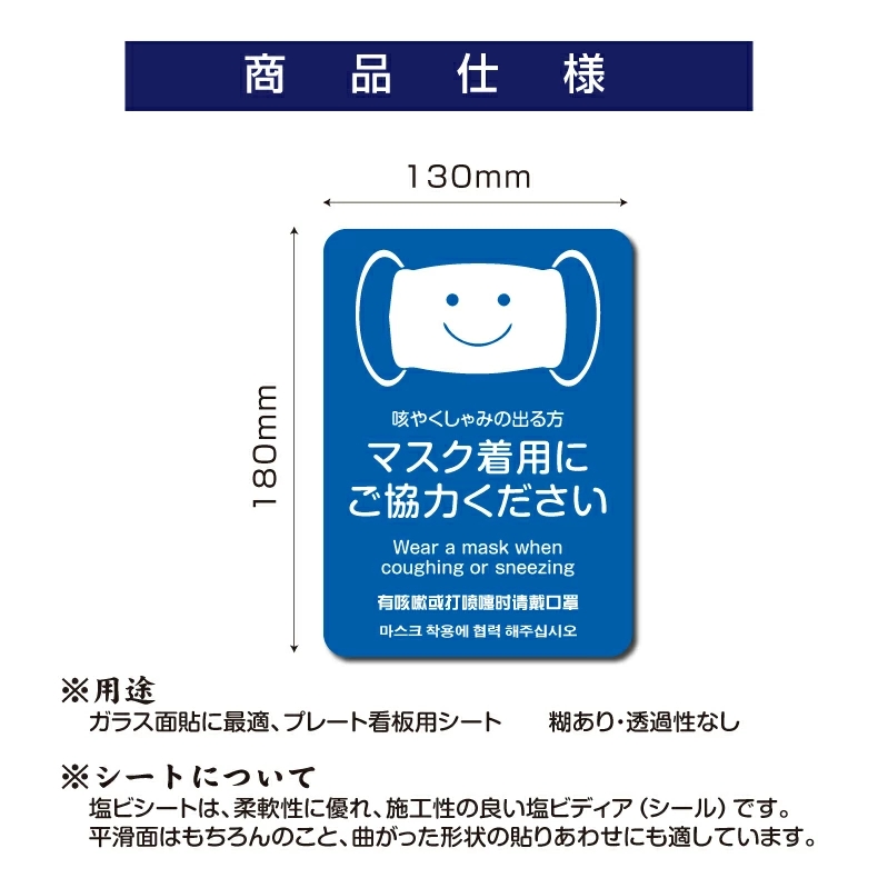 日本語、英語、中国語、韓国語の4か国語対応です。 ステッカー看板。シール状なので貼るだけでOK。