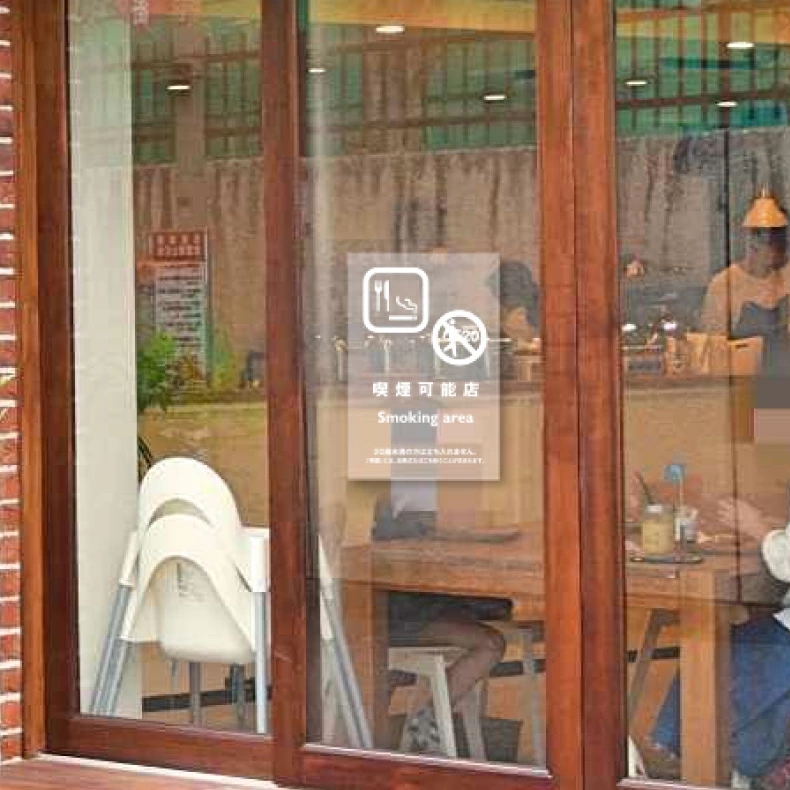 日本語、英語、中国語、韓国語の4か国語対応です。 ステッカー看板。シール状なので貼るだけでOK。