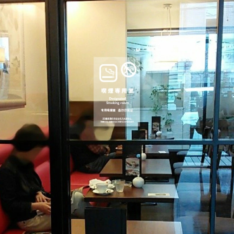 日本語、英語、中国語、韓国語の4か国語対応です。 ステッカー看板。シール状なので貼るだけでOK。