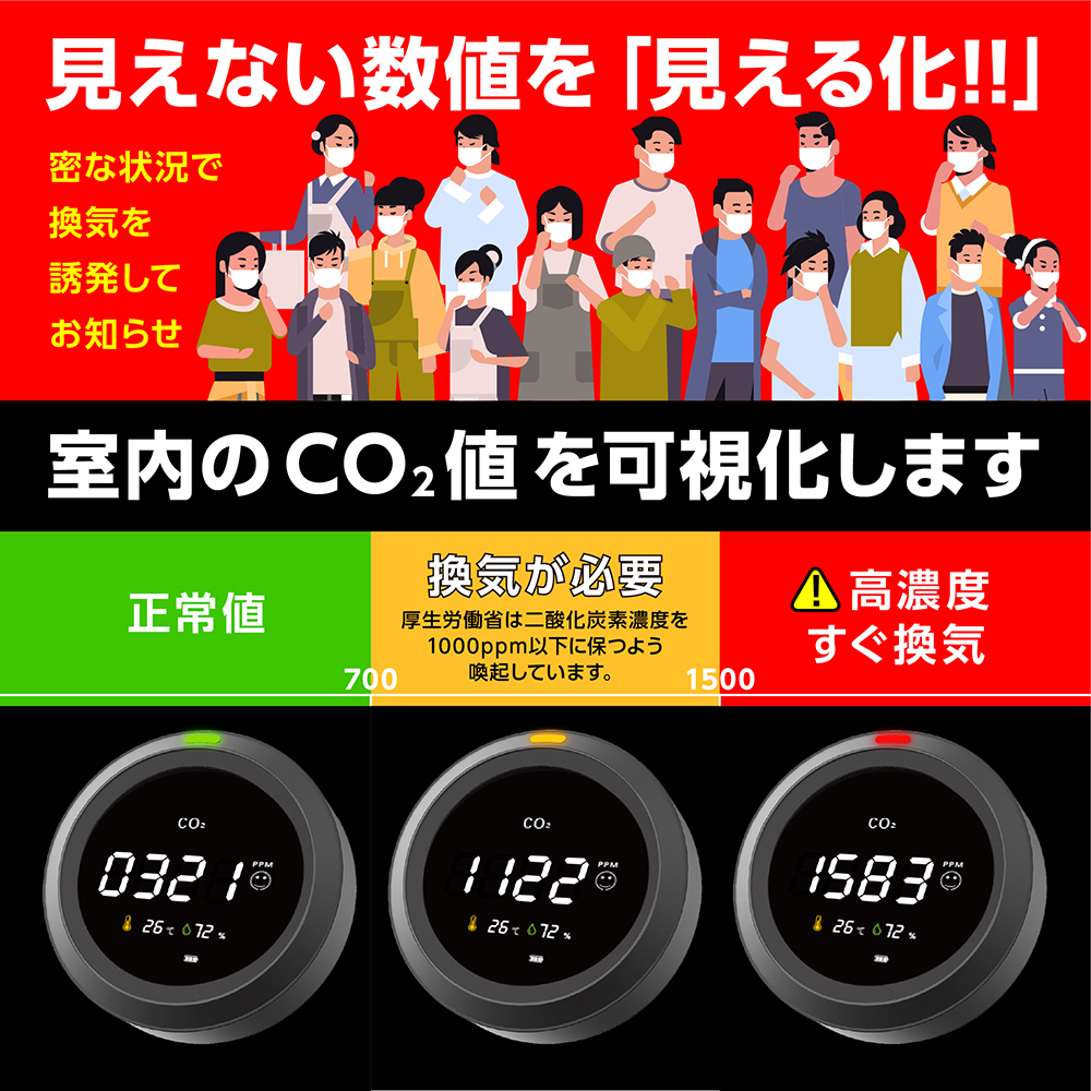 二酸化炭素濃度計 コンパクト 空気質検知器 3密対策に空気質検知器