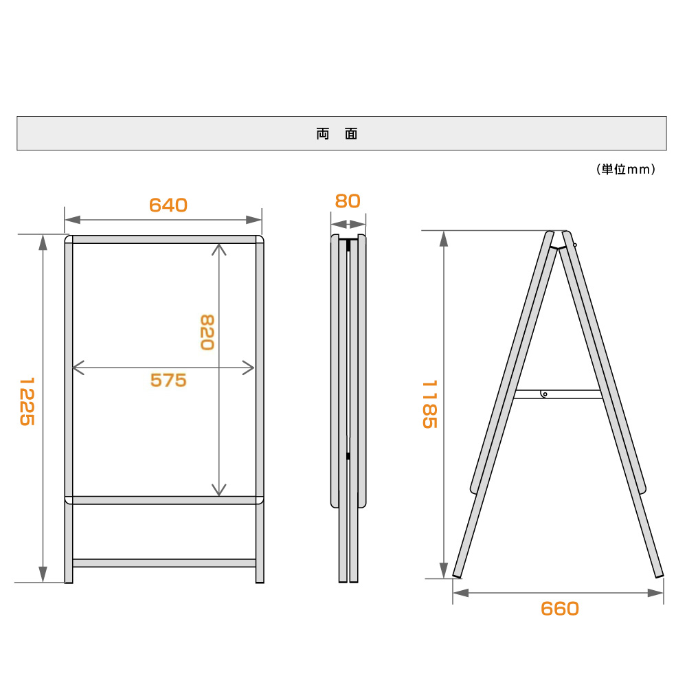 A型スタンド看板2点セット(A1サイズスタンド看板、ウェイトアーム) クリップ式A型看板 両面 シルバー W640mm×H1225mm 屋外看板 スタンド看板 A看板 店舗用看板 クリップ式 前面開閉式 2set-a1-d