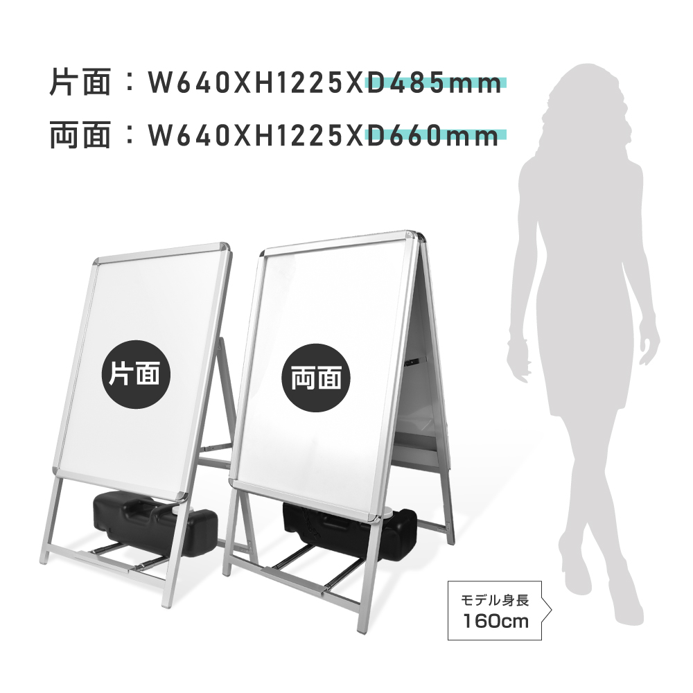 A型スタンド看板3点セット(A1サイズスタンド看板、バリウエイト、ウェイトアーム) クリップ式A型看板 両面 シルバー W640mm×H1225mm 屋外看板 スタンド看板 A看板 店舗用看板 クリップ式 前面開閉式 3set-a1-d