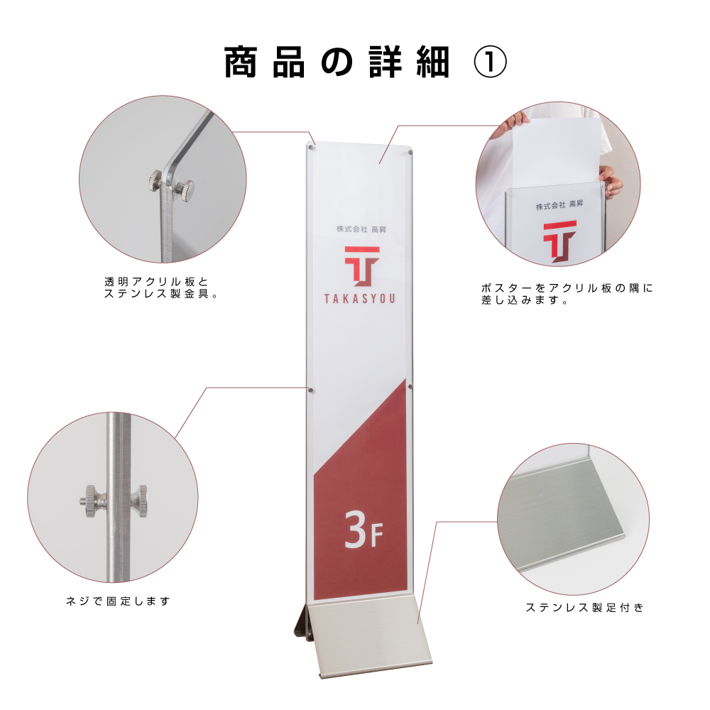 ステンレス製 フロア案内 スタンドサイン W250mm*H1200mm フロアスタンド ask-1200