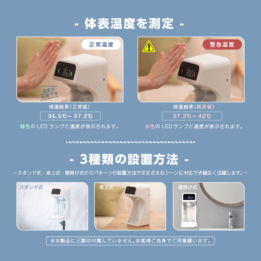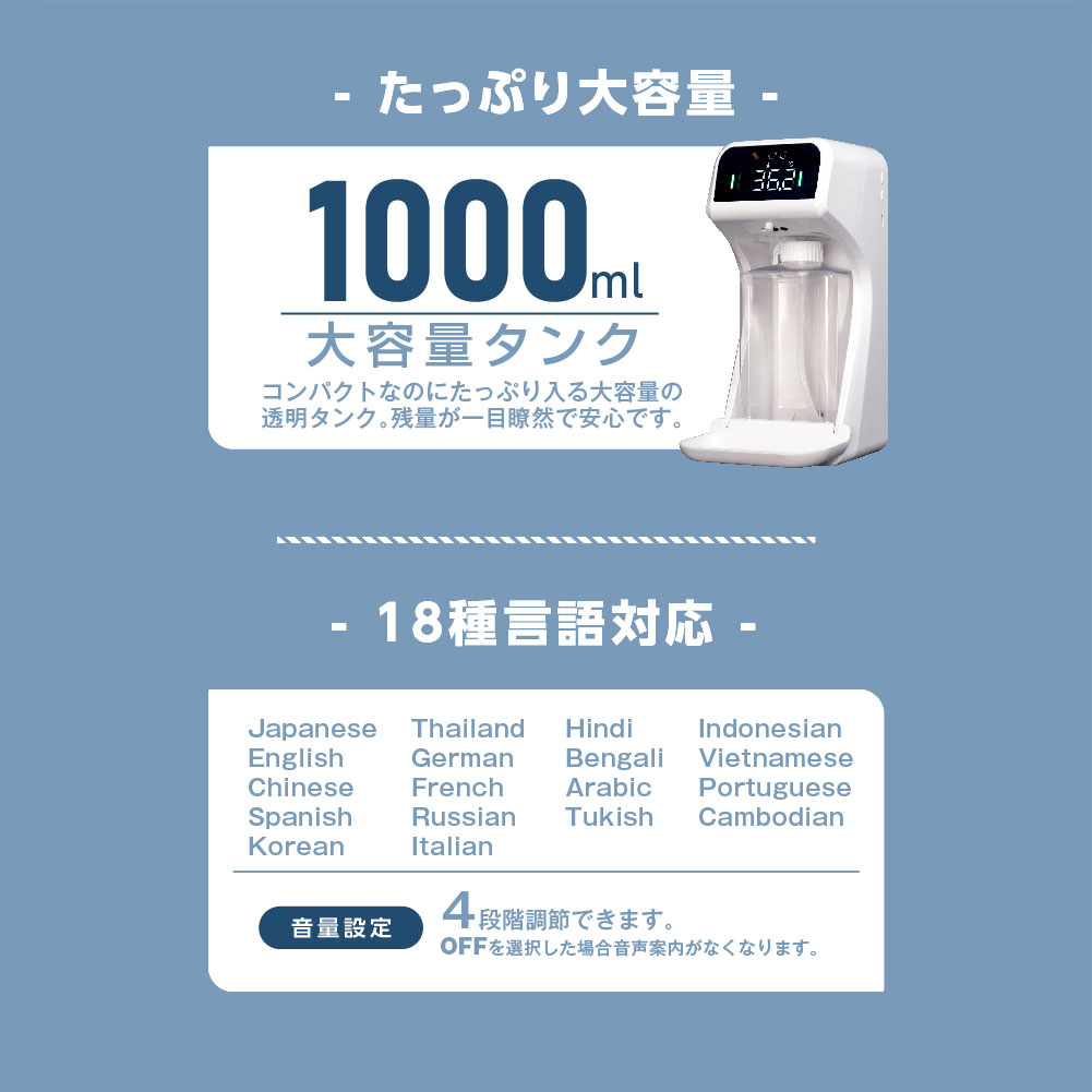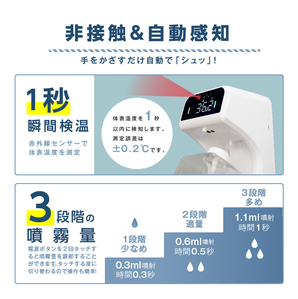 アルコールディスペンサー 非接触 検温 大容量 1000ml 手指消毒 自動温度測定消毒器 センサー式 自動手指消毒器 自動消毒噴霧 アルコール ジェル 2種類 IPX4防水 スピード検温 温度測定 オートーセンサー 飲食店 学校 会社 病院 送料無料 mkks-1000