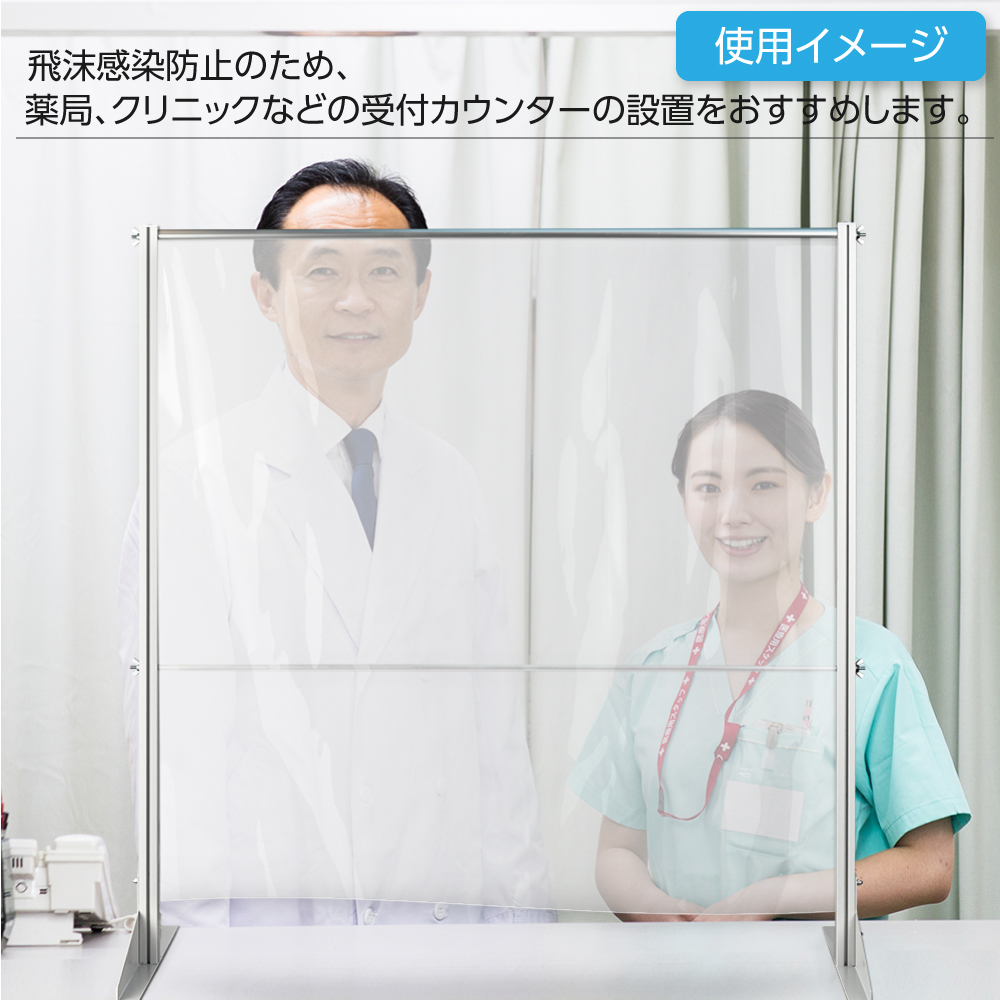 [日本製]ビニールスタンド 約W780mm×H712mm 荷物受け渡し可能 ビニールカーテン 透明 アルミフレーム スクリーン 飛沫防止シート 間仕切り 衝立 卓上パネル オフィス 会社 薬局 クリニック レジカウンター 受付 面談カウンター 組立式 ybp-7871m