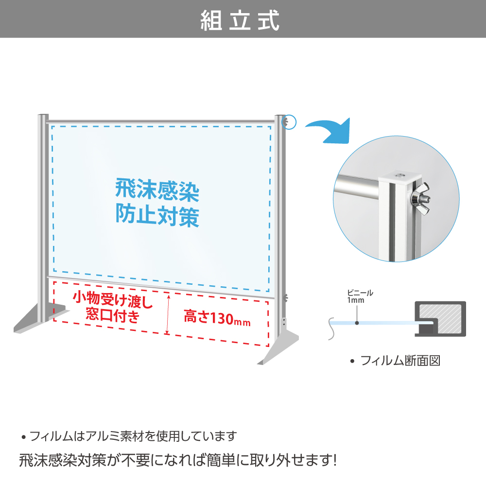 [日本製] 透明 ビニールスタンド 約W636mm×H615mm ビニールカーテン アルミフレーム 荷物受け渡し可能 スクリーン 飛沫防止シート 間仕切り 衝立 卓上パネル オフィス 会社 薬局 クリニック レジカウンター 受付 面談カウンター 組立式 ybp-6361k