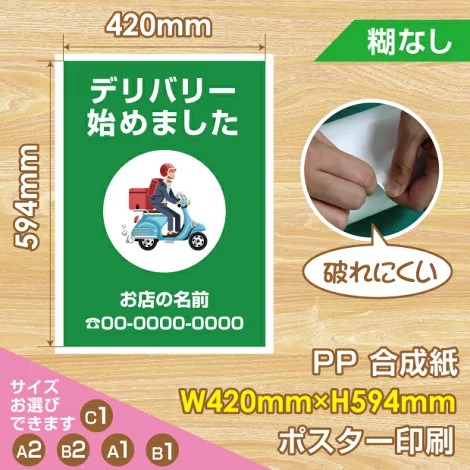 新型コロナウイルス感染対策 感染予防 【デリバリー初めました!】ポスター A2サイズ(w420xh594mm) pst-00010