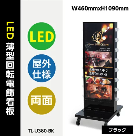 LED薄型回転電飾スタンド看板 黒タイプ W460mmxH1090mm 店舗用看板 TL-U380-BK 【法人名義:代引可】