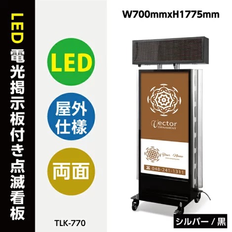LED電光点滅看板 電光掲示板付き W700mmxH1775mm 両面表示【ブラック、シルバー】2色選べる TLK-770【代引不可】
