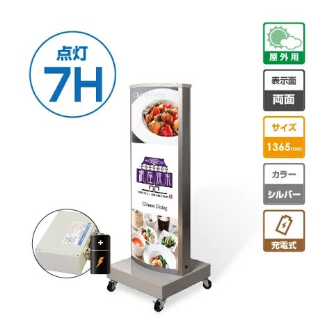 LED電飾バッテリースタンド看板 充電式 W400mmxH1185mm シルバー led-j1100【法人名義:代引可】