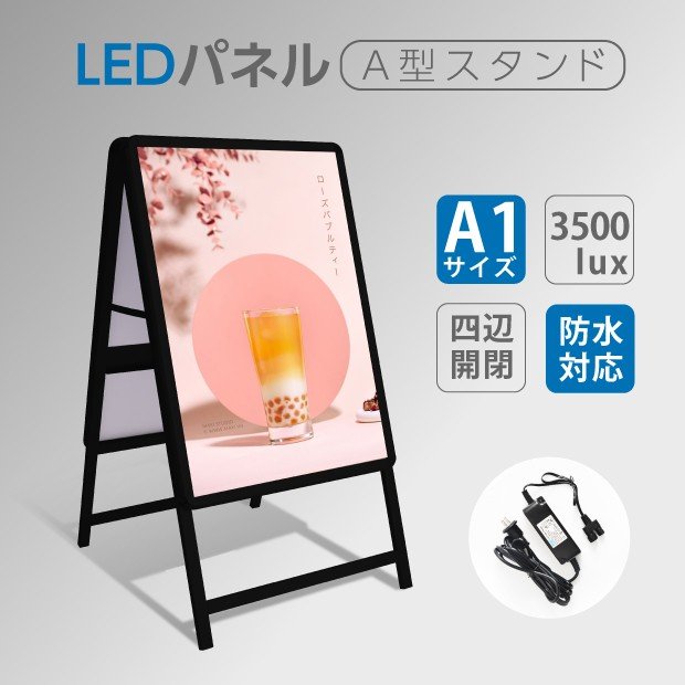 A型LEDライトパネル 高輝度タイプ A1 片面 ブラック lps-a1s-bk【法人名義:代引可】