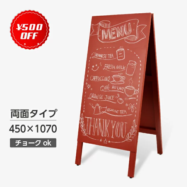 A型黒板スタンド 赤 両面 H1070mm Lサイズ チョーク専用 木製 手書き 店舗看板 (wbs-r110-p)