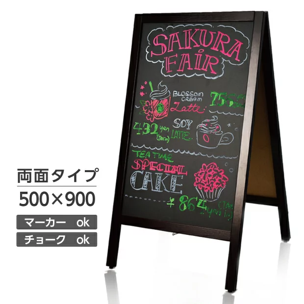 A型スタンド看板 W640xH1225mm 両面 黒板 手書き 店舗用看板 A型看板(法人名義:代引可)A1-LK