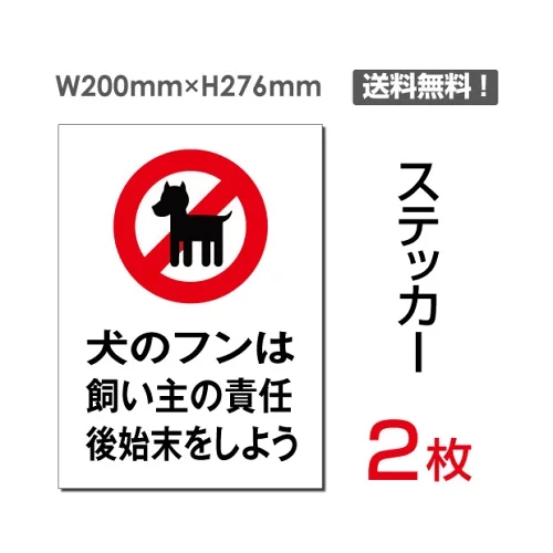 【送料無料】メール便対応「犬のフンは 飼い主の責任 後始末をしょう」【ステッカー シール】200×276mm犬の散歩厳禁 看板 ペットの散歩マナー フン禁止 散歩 犬の散歩禁止 フン尿禁止 ペット禁止 公園、駐車場、私有地など、敷地内につき、犬の散歩を禁止する sticker-041-2(2枚組)