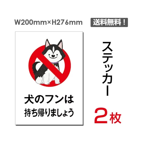 【送料無料】メール便対応「犬のフンは持ち帰りましょう」【ステッカー シール】200×276mm犬の散歩厳禁 看板 ペットの散歩マナー フン禁止 散歩 犬の散歩禁止 フン尿禁止 ペット禁止 公園、駐車場、私有地など、敷地内につき、犬の散歩を禁止するsticker-043-2(2枚組)