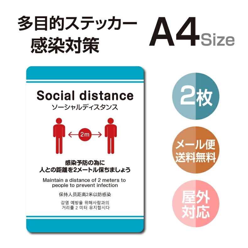 【メール便送料無料】 多目的ステッカー 店舗応援 A4サイズ 居酒屋 ファミレス 寿司屋 営業中 飲食店 カフェ レストラン 店舗支援 ソーシャルディスタンス 感染予防 アルコール消毒 マスク ウイルス対策 stk-c052-2set