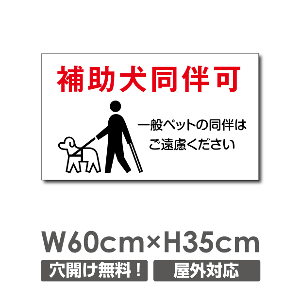 送料無料 プレート看板「補助犬同伴可」 W600mm×H350mm 看板 ペットの散歩マナー フン禁止 散歩 犬の散歩禁止 フン尿禁止 ペット禁止 DOG-124